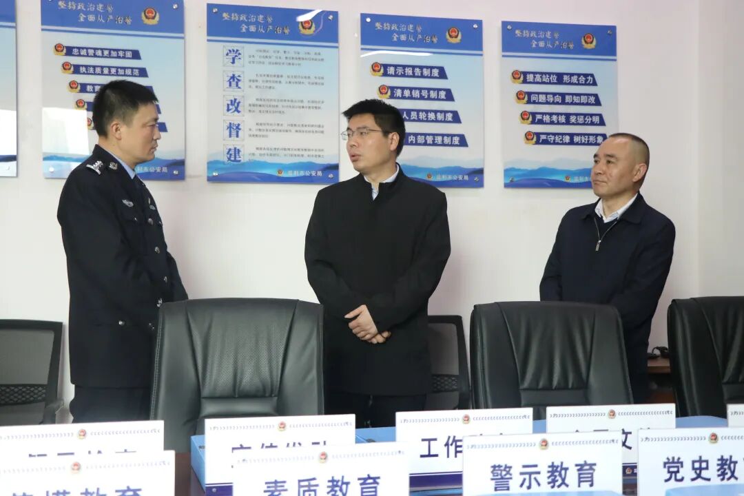 4月6日,市委书记、市政法队伍教育整顿领导小组组长韩旭到全市政法系统调研政法队伍教育整顿工作,市领导杨从国、罗海林参加活动。