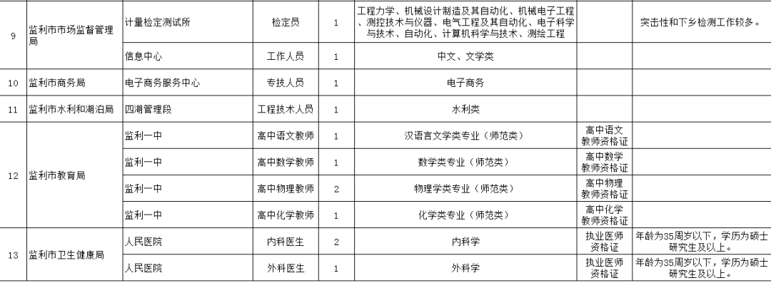 3、监利市人民医院招聘岗位仅限全日制硕士研究生报考,且年龄不超过35周岁(1986年1月1日及以后出生)。其他招聘岗位年龄要求,全日制硕士研究生不超过40周岁(1981年1月1日及以后出生);“双一流”高校全日制本科生不超过35周岁(1986年1月1日及以后出生)。