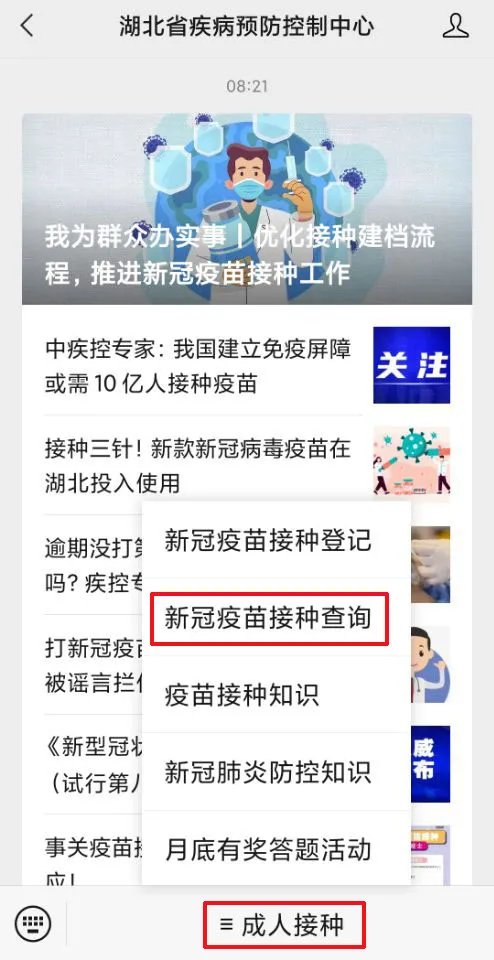 湖北省新冠疫苗接种信息查询方法