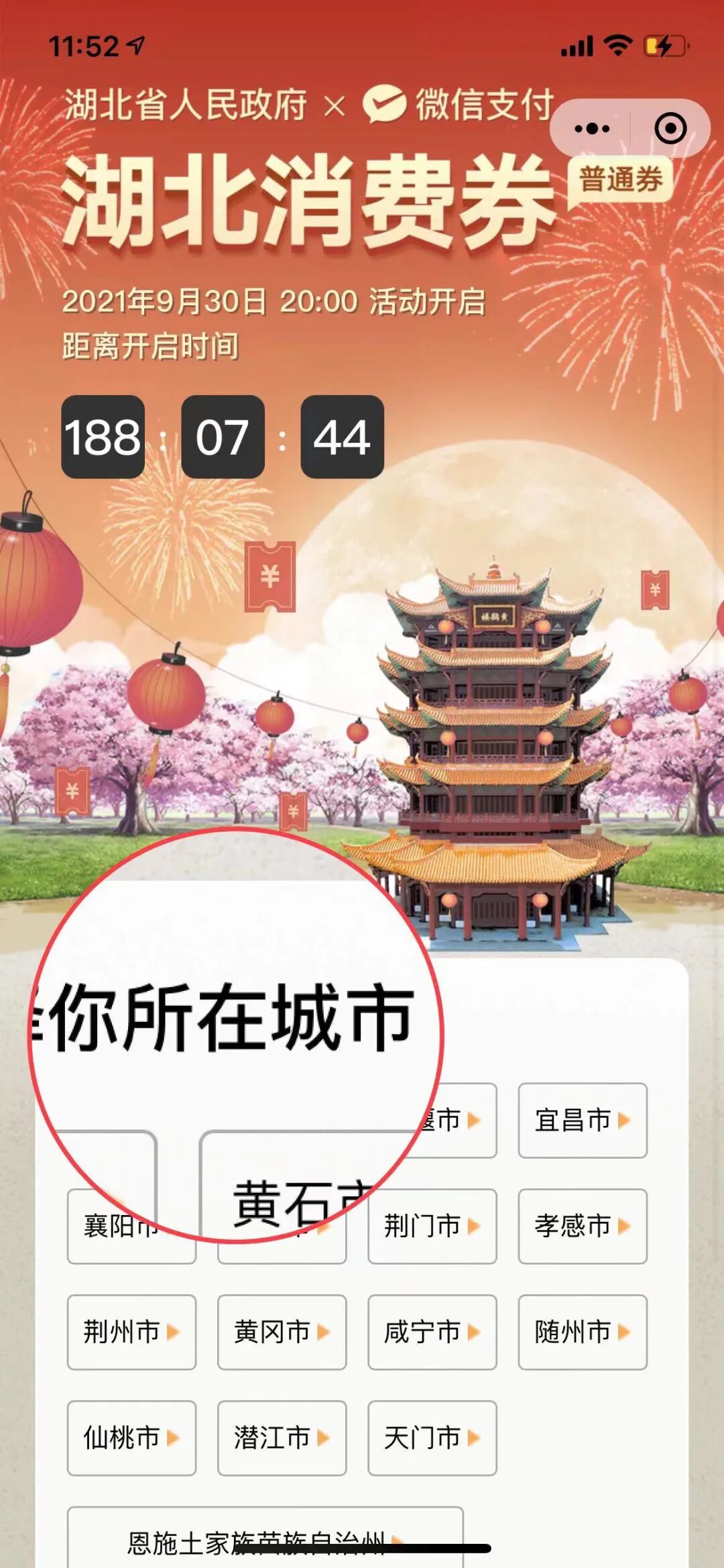 微信:湖北日报官方微信-优惠券-选择你所在城市-我抢到的券