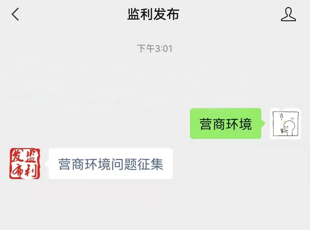 进入“监利发布”公众号,在对话框输入“营商环境”关键词,点击弹出链接,即可进入“营商环境问题线索征集”专栏留言。
