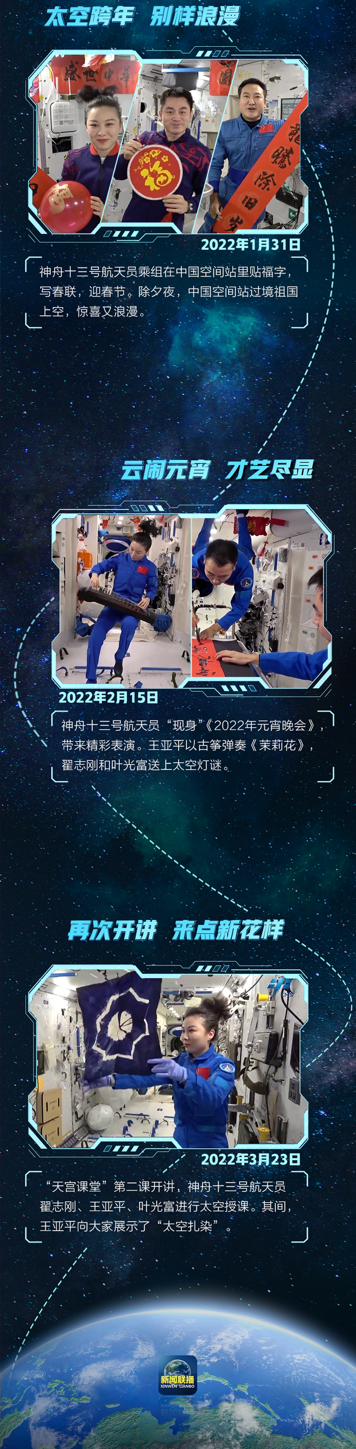 据中国载人航天工程办公室消息,神舟十三号载人飞船已完成全部既定任务,将于近日择机撤离空间站核心舱组合体,返回东风着陆场。目前,神舟十三号乘组已做好飞船撤离前的各项准备,东风着陆场及工程相关系统正在开展迎接航天员返回的各项准备。 一图了解,“出差三人组”6个月里的“太空记忆”↓↓↓