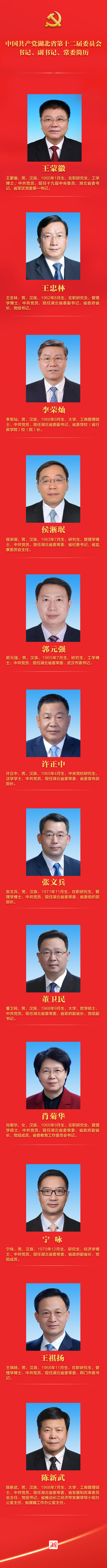 新一届湖北省委常委集体亮相(简历、照片)