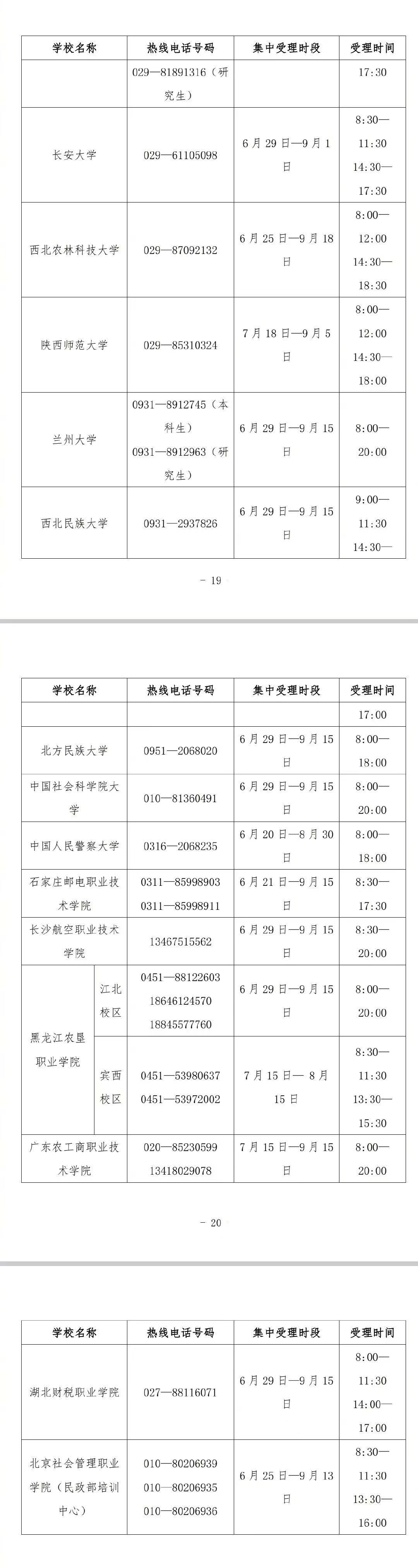教育部要求各省区市及所属高校、中央高校学生资助管理部门均开通热线电话,并结合实际情况自行确定集中受理时段和具体受理时间。