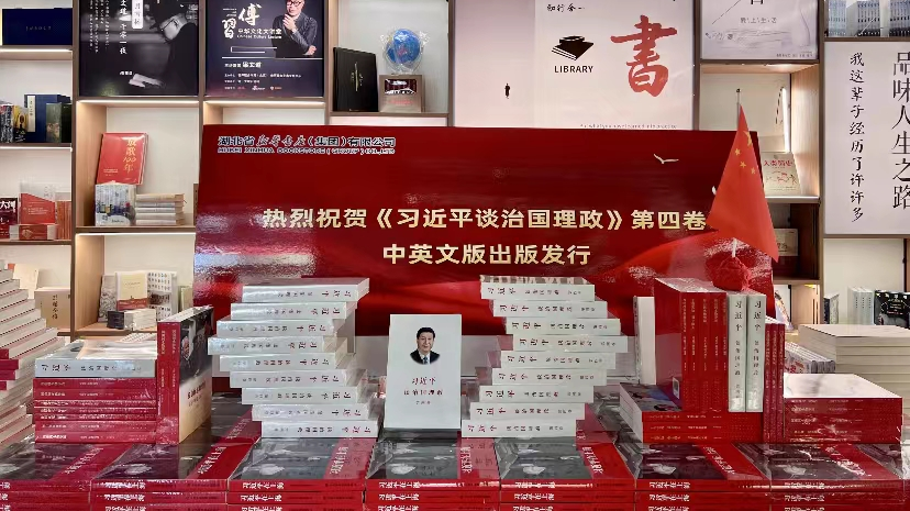 在监利书城购书中心专柜展台前,《习近平谈治国理政》第四卷摆放在醒目位置。自7月上架以来,该书一直处于热销状态。