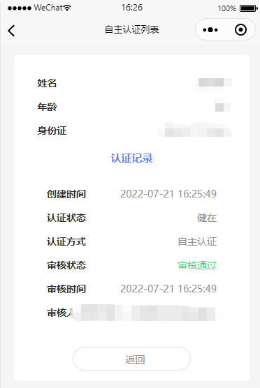 第一步:老人或老人家属点击“自主认证”图标认证,进入自主认证界面,如果老人知道自己的身份证号,可选择“身份证查询”,如果忘记了自己的身份证号,可以选择“人脸识别查询”。