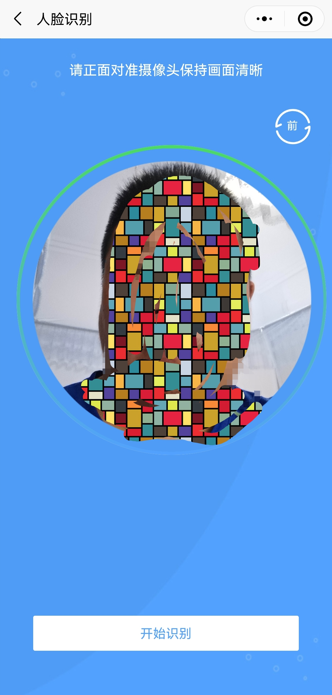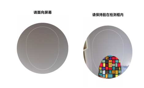 第五步:按照“人脸识别”的要求,面向屏幕,保持脸在检测框内,同时眨眨眼睛,就通过了人脸识别认证。