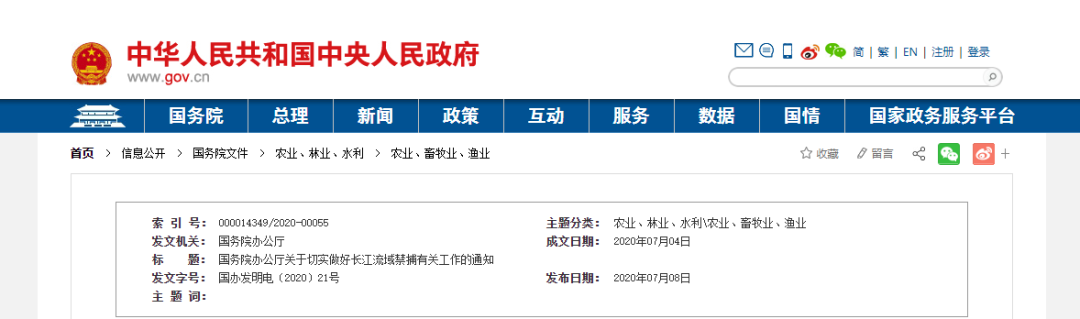 农业农村部制订《进一步加强长江流域重点水域禁捕和退捕渔民安置保障工作实施方案》,《方案》要求,确保自2021年1月1日起长江干流和重要支流、大型通江湖泊(即“一江、两湖、七河”)等重点水域实行10年禁捕,巩固332个水生生物保护区全面禁捕成果。